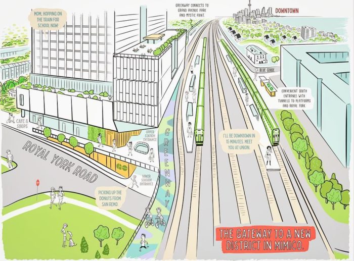Together with Mimico GO Station, 327 Royal York embodies the seamless integration between higher-order transit, a beautiful public realm and dynamic mixed-use development. 327 Royal York Condos is another great plan with Grand Central Mimico! Grand Central Mimico is a master-planned, transit-tailored community comprising over 2 million square feet of mixed-use development. Anchoring the community is a groundbreaking partnership with Metrolinx, securing a brand new Mimico GO Station.